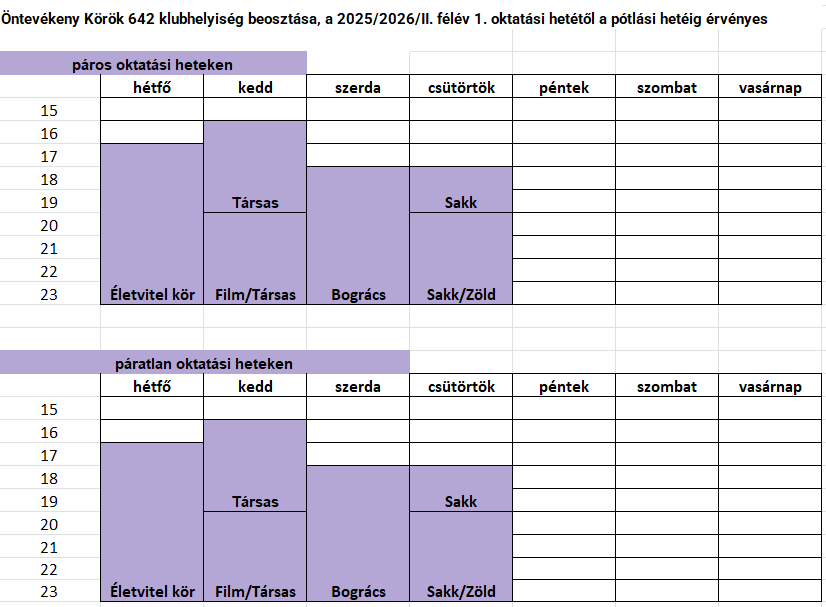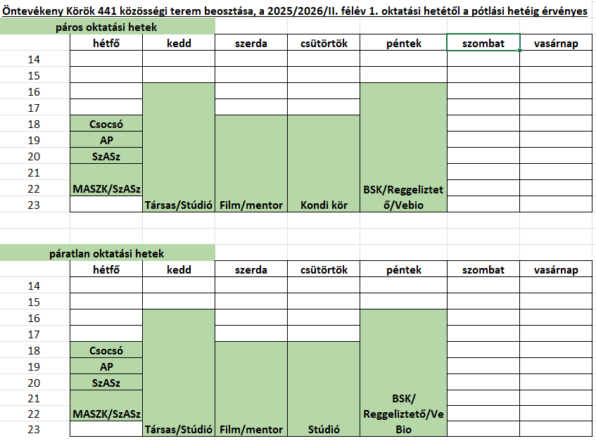 A közösségi termekre foglalást a portán található formanyomtatvány kitöltésével tudtok leadni. Csak szorgalmi időszakra érvényes az adott beosztás, a